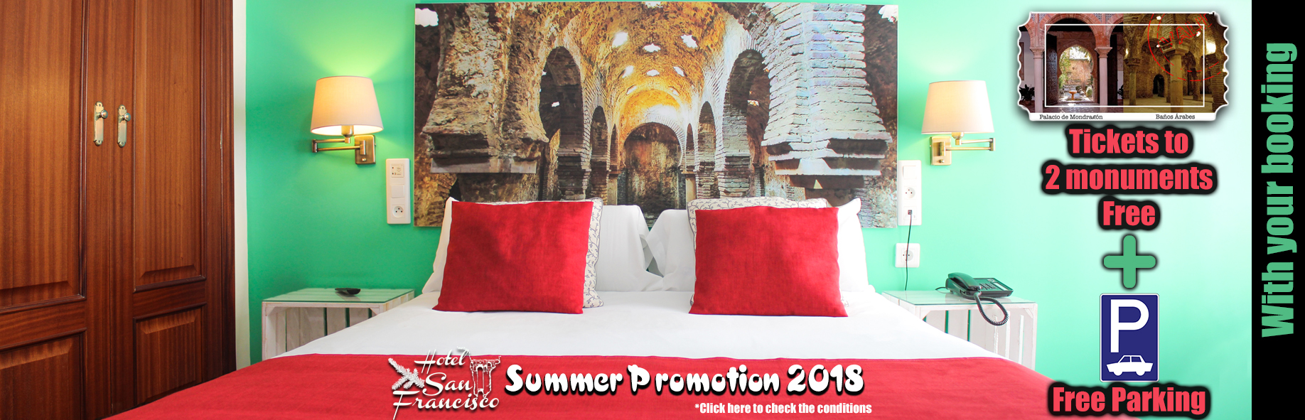 This summer, with the Summer Promotion 2018, make your booking and get a free ticket for one person to 2 monuments of Ronda (Mondragón Palace and Arab Baths) and a free parking space.